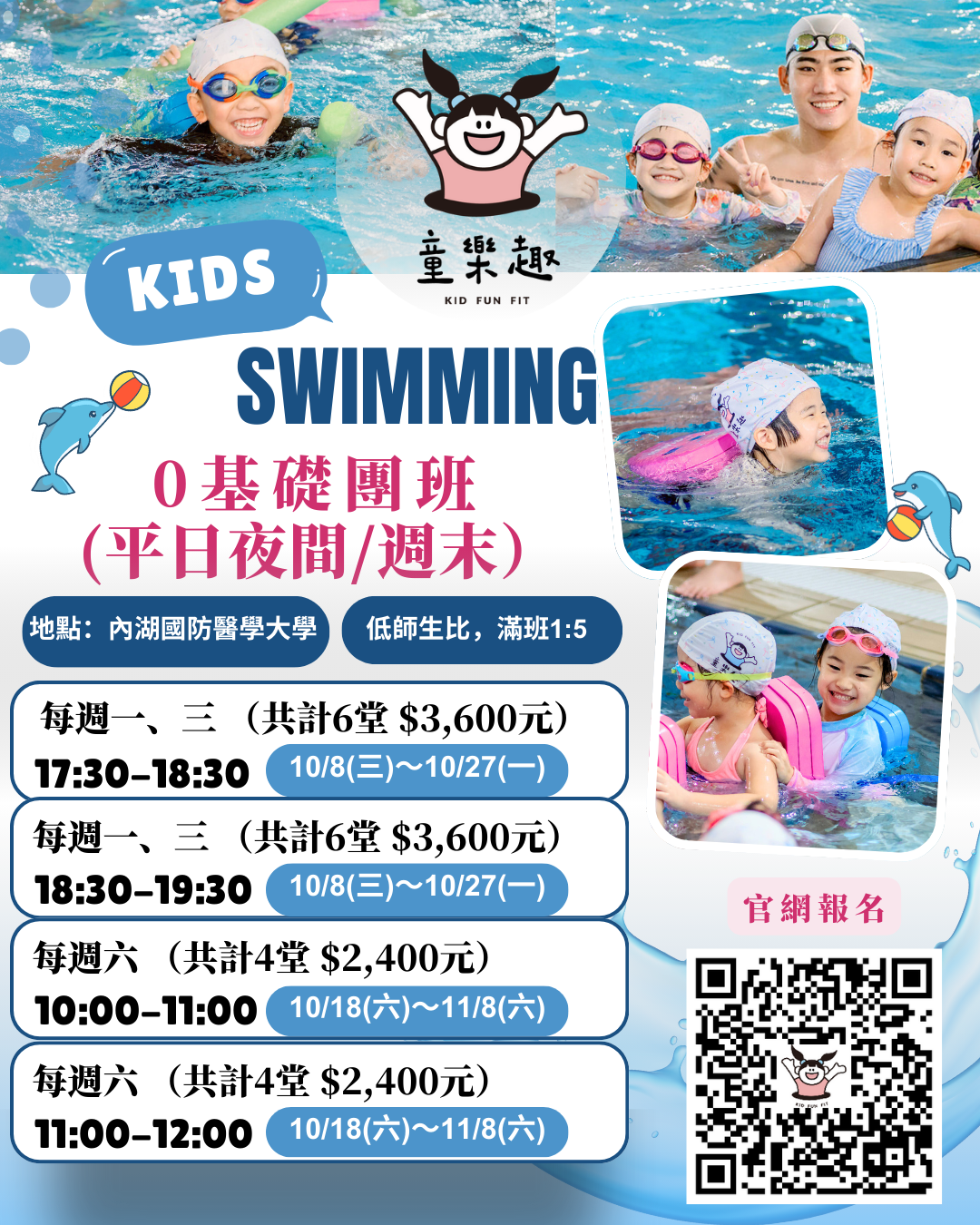 招生對象: 4歲-12歲游泳0基礎的初學者 (5位滿班)