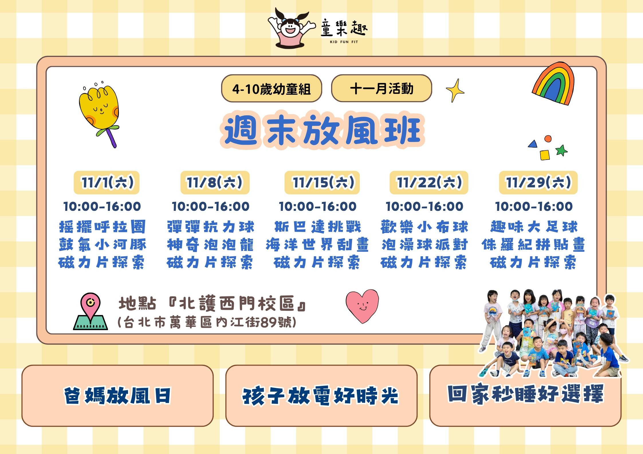 週末放風班:11/1(六)、11/8(六)、11/15(六)、11/22(六)、11/29(六)