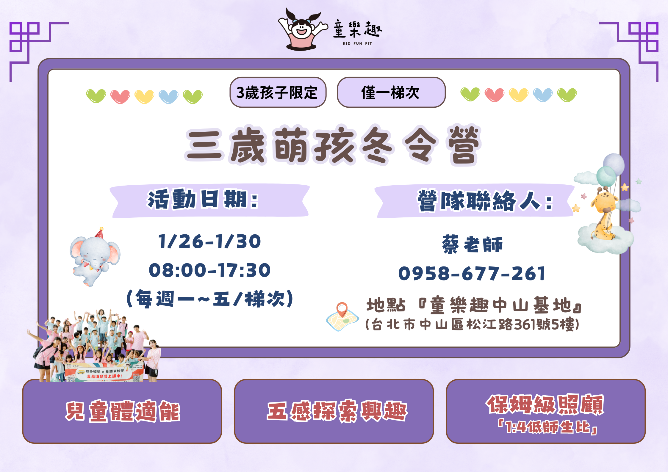 2026多元探索冬令營-中山基地-萌孩組(適合足3歲-未滿4歲)
